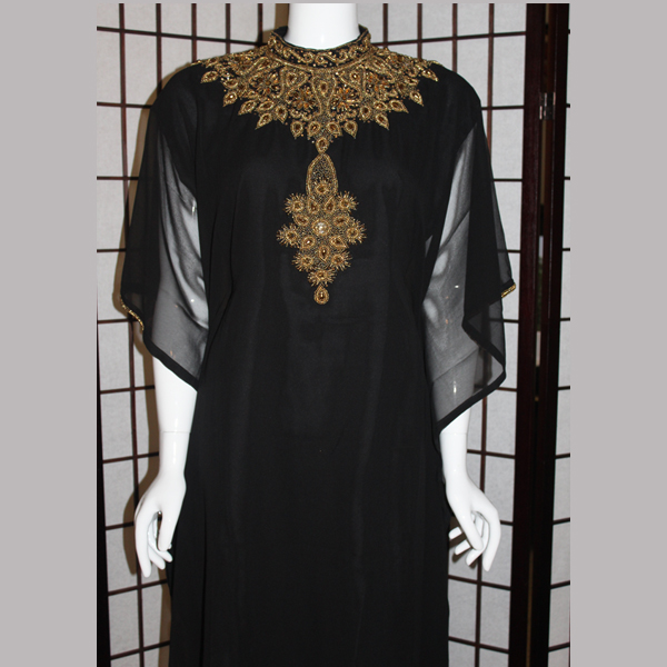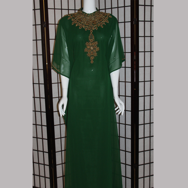 This gorgeous Kaftan is elegant and classy. This classy high neck is embellished with gorgeous crystals and beads. The Alia Kaftan comes in 4 different colors Turquoise, onyx black, Hunter green and Royal blue. One size fits all with a hidden strap for desirable adjusted waist.